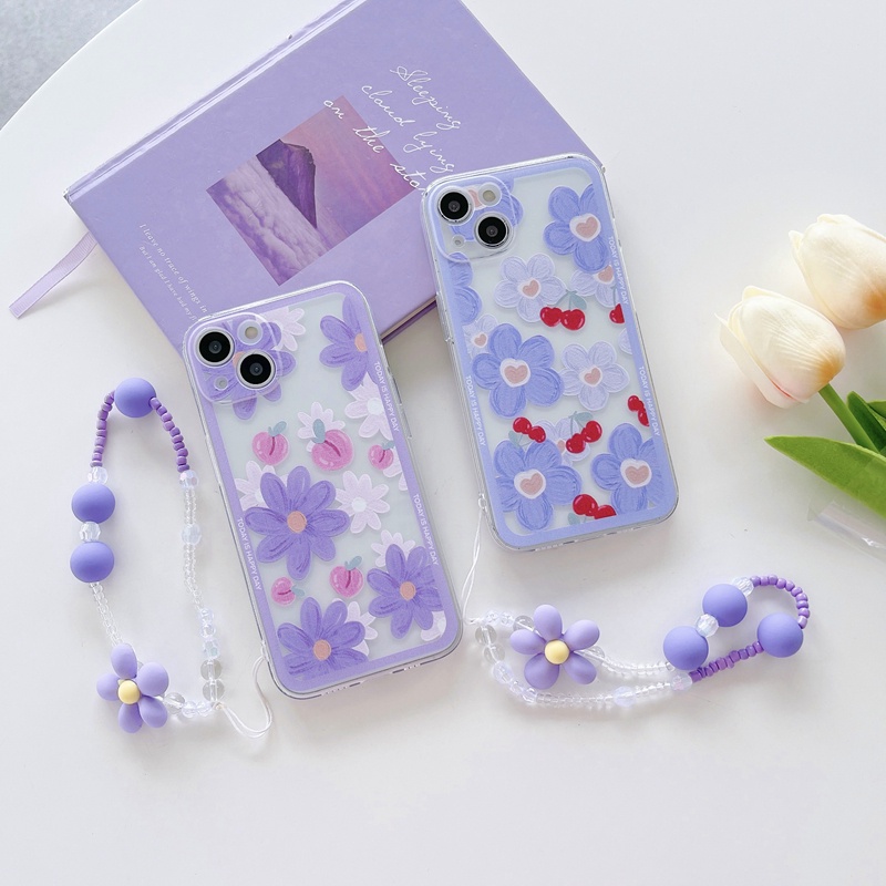 Jual Soft Case Motif Bunga Ungu Dengan Tali Pendek Untuk OPPO Reno 8 8z